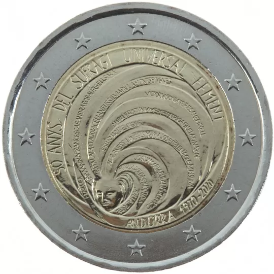 Andorra 2 euro 2020 Cinquentenário do sufrágio universal para as mulheres 37,00 € Desconto de %. Partilhar Comprar Contactar Cinquentenário do sufrágio universal para as mulheres
