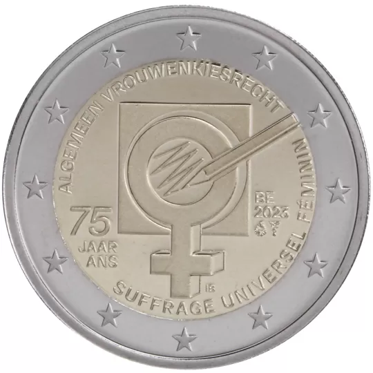 BÉLGICA 2023 75.º aniversário do direito de sufrágio das mulheres na Bélgica 2,00 € Desconto de %. Partilhar O produto encontra-se sem stock. 75.º aniversário do direito de sufrágio das mulheres na Bélgica