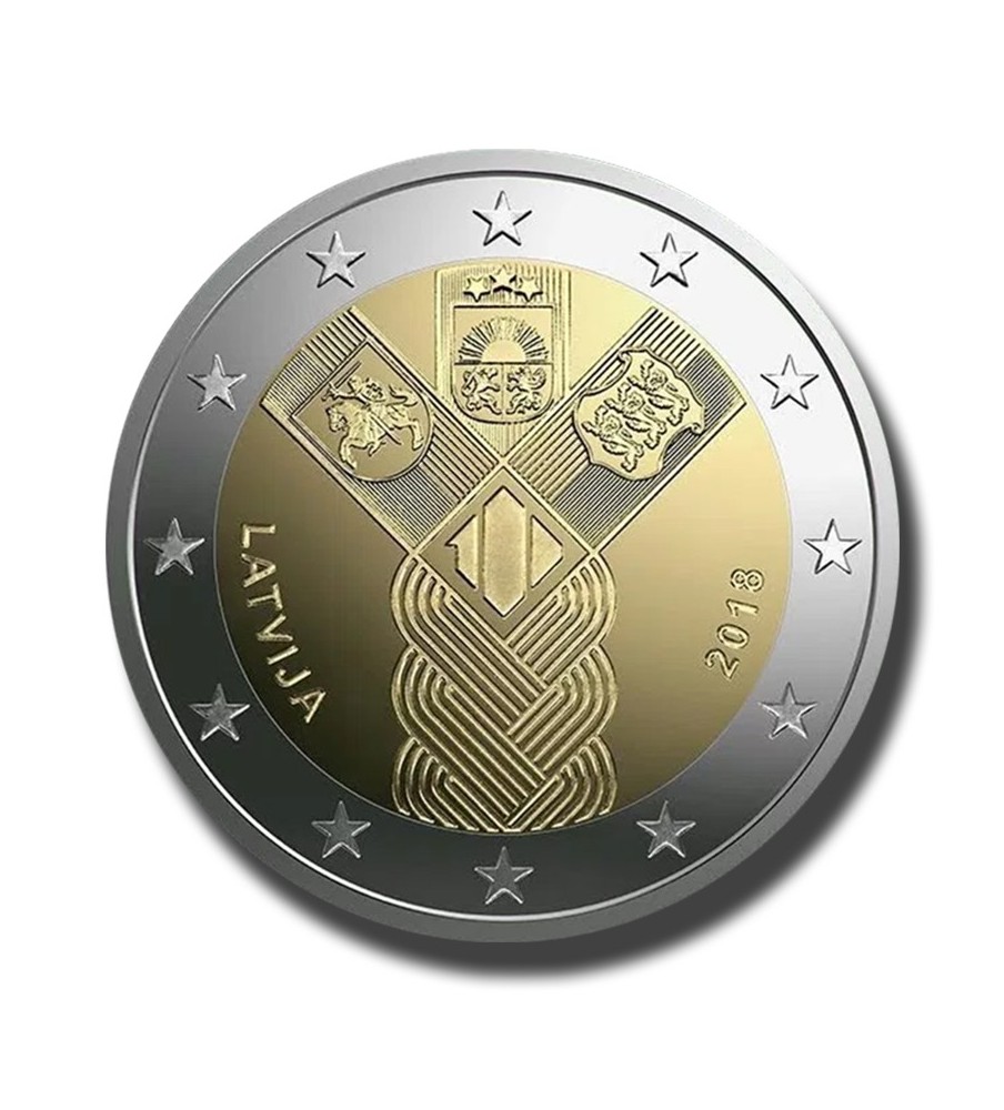 A Estónia, Letónia e Lituânia emitiram em conjunto, em 2018, uma moeda comemorativa de 2 euros com um desenho comum, para celebrar o estabelecimento dos Estados da Estónia e da Letónia e o restabelecimento do Estado da Lituânia.