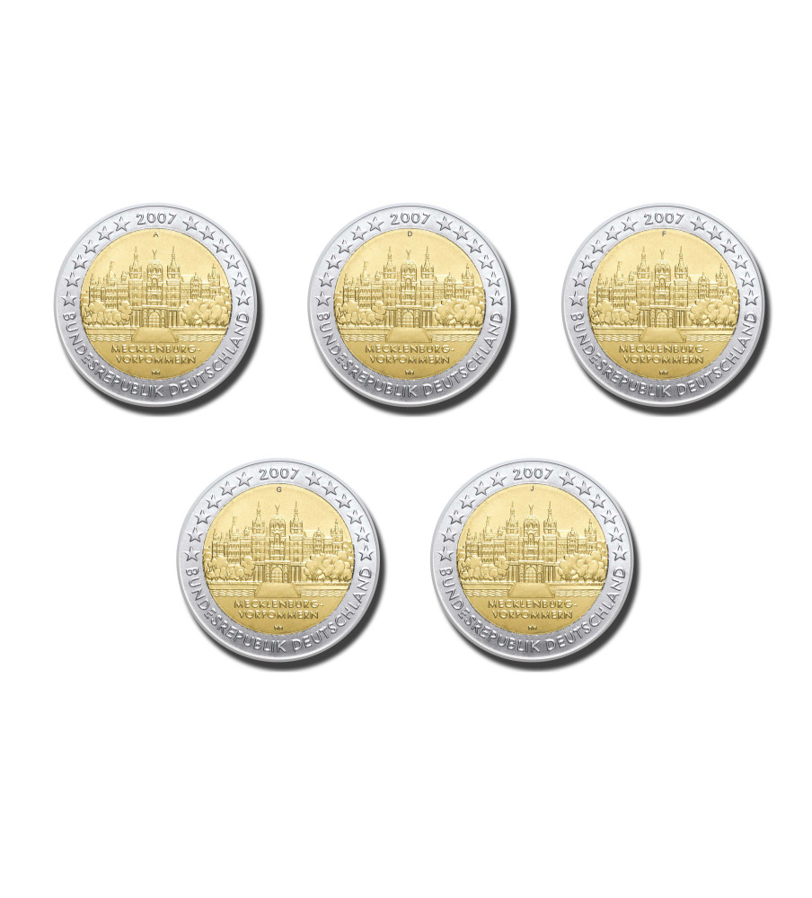 Alemanha 2 euro 2007 Mecklenburg‑Vorpommern (5 moedas)