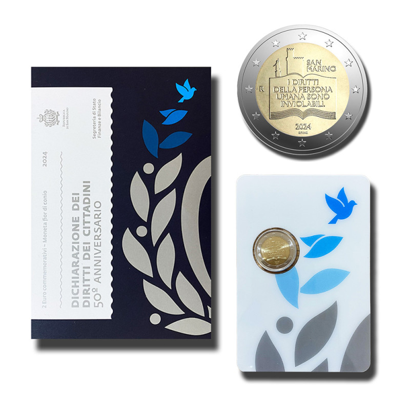 Sao Marino 2 euro Direitos Humanos 2024 26,00 € Desconto de %. Partilhar Comprar Contactar Declaração dos Direitos dos Cidadãos de San Marino 2024 - Cartão com moeda de 2 euros