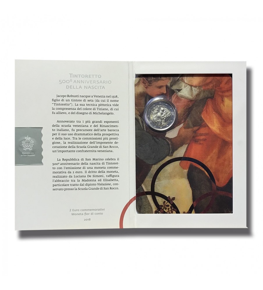 Sao Marino 2 euro Tintoretto 2018 135,00 € Desconto de %. Partilhar Comprar Contactar Moeda de 2 euros de San Marino, comemorativa do 500º aniversário do nascimento de Tintoretto, em 2018.