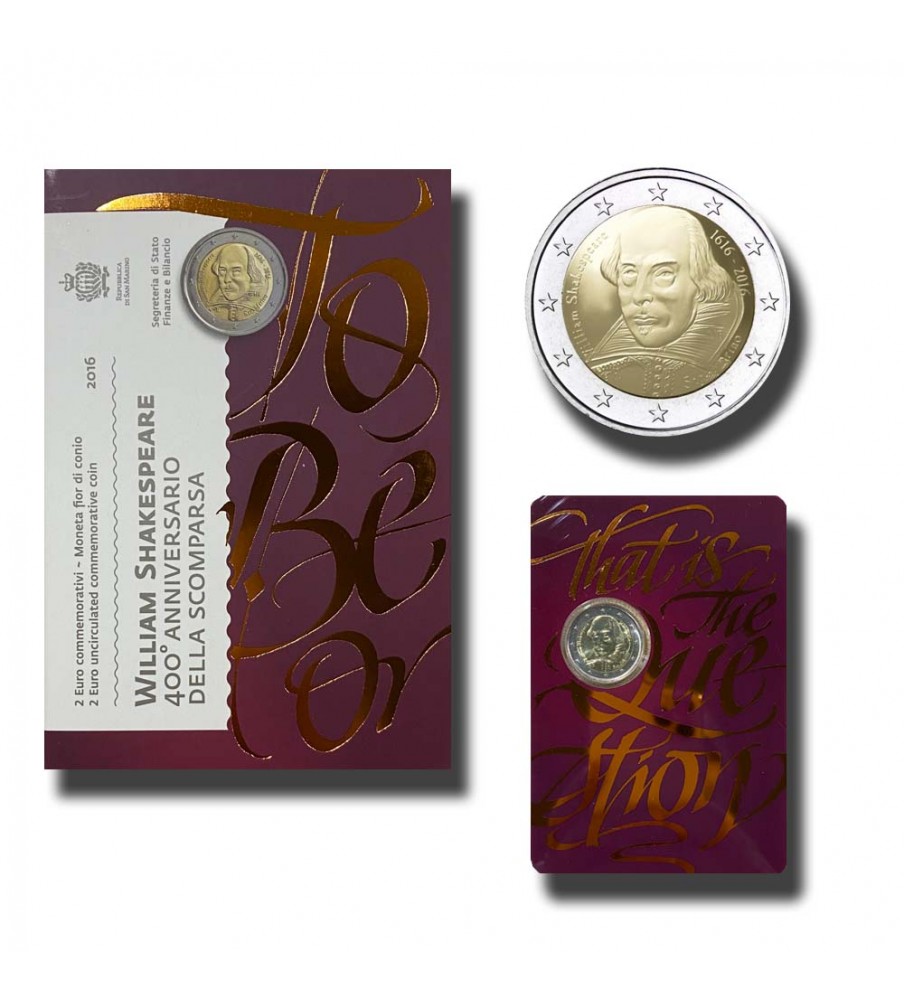 Sao Marino 2 euro William Shakespeare 2016 25,00 € Desconto de %. Partilhar Comprar Contactar Moeda Comemorativa de 2 Euros de William Shakespeare de San Marino de 2016